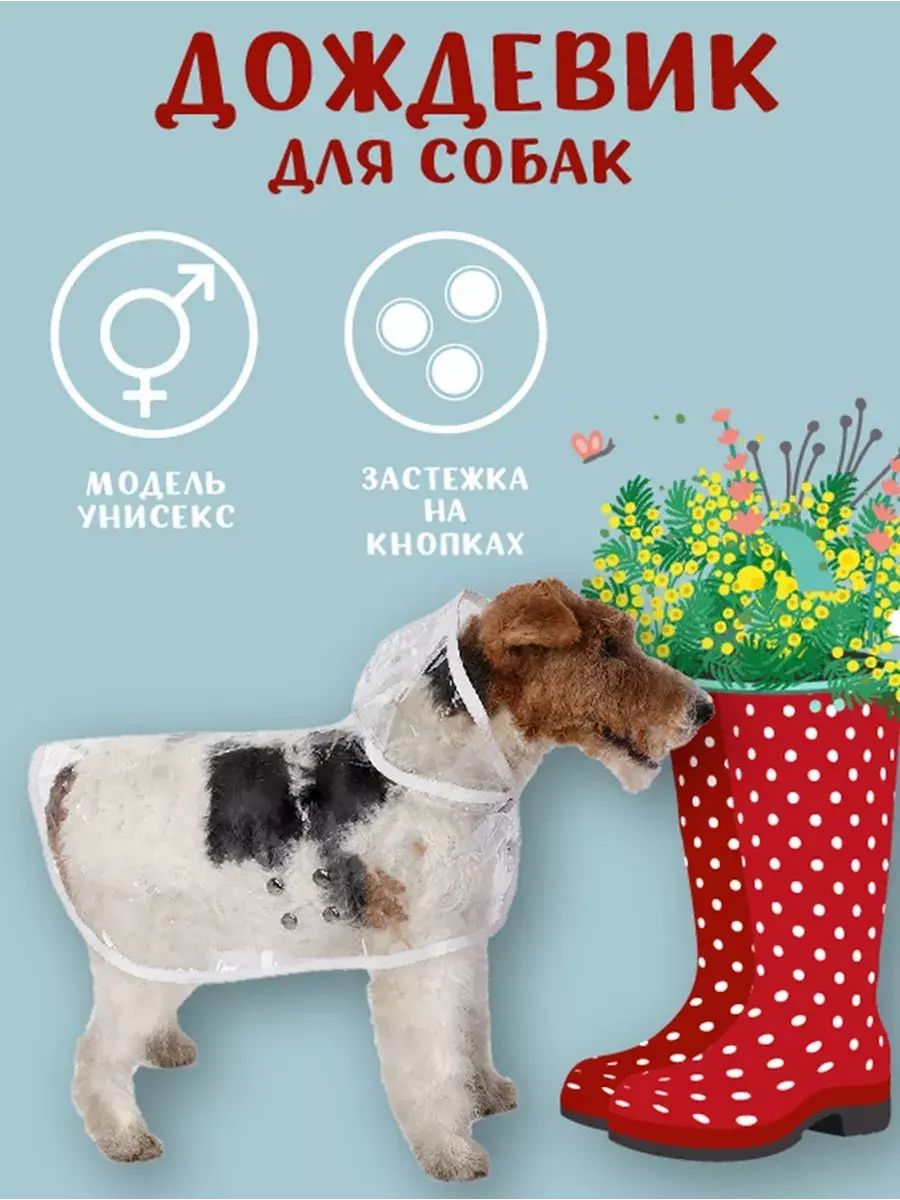 Дождевик для собак прозрачный весенний, летний – это удобный и практичный аксессуар, который защитит вашего питомца от дождя и ветра во время прогулок. Плащ для собак выполнен из прочного и гибкого материала, который не мнется и не рвется при использовании.