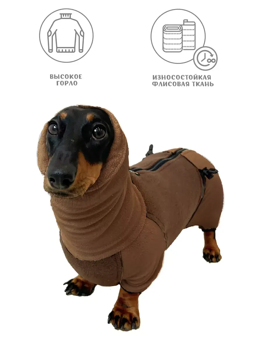 Флисовый комбинезон для собак породы такса малой, стандартной и карликовой, кроличьи, той-таксы с высоким горлом снудом для мальчика и девочки выполнен из гипоаллергенной, мягкой, прочной ткани заменит дождевик для такс. Комбинезон для собак зимний, утепленный осень зима для коротколапых пород для таксы, бульдога на спине имеется длинная молния, благодаря ей комбинезон легко, быстро одевается и снимается, есть защитная планка внутри, чтобы шерсть не попадала в молнию. А для плотного прилегания и комфортного ношения есть дополнительные резинки-утяжки по окружности комбинезона в районе живота и шеи собаки. Высокое горло заменит снуд для собак, полностью закрывает шею собаки и защищает от ветра. Комбинезон для собаки выполнен с учетом анатомических особенностей тела таксы. Разрешена машинная стирка при 30 градусов, комбинезон быстро сохнет и не мнется. Комбинезон для таксы. Пыльник для таксы. Одежда для таксы. Комбинезон для таксы зимний.