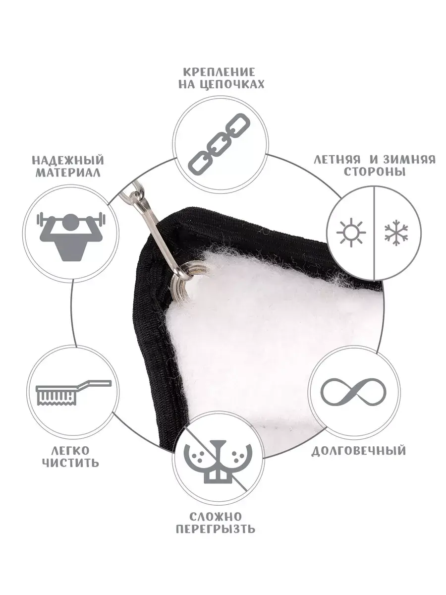 Представляем вам уникальный подвесной гамак для грызунов, крыс, хомяка, джунгарика, сирийского и мышей, ежей, белок! Этот невероятно практичный аксессуар является настоящим домиком для вашей крысы. Он идеально подходит как для морских свинок, так и для других мелких грызунов, включая дегу. Домик имеет компактный размер 18*18 см, что позволяет легко разместить его в любой клетке, переноске или другом месте, тк он крепится с помощью 4 прочных карабинов, . Изготовлен из нейлона и искусственного меха. Благодаря своему подвесному дизайну, гамак не только создает уютное место для отдыха, но и занимает минимум места в клетке, переноске, давая возможность вашим питомцам свободно передвигаться. Прост в уходе, можно стирать при температуре 30 градусов.