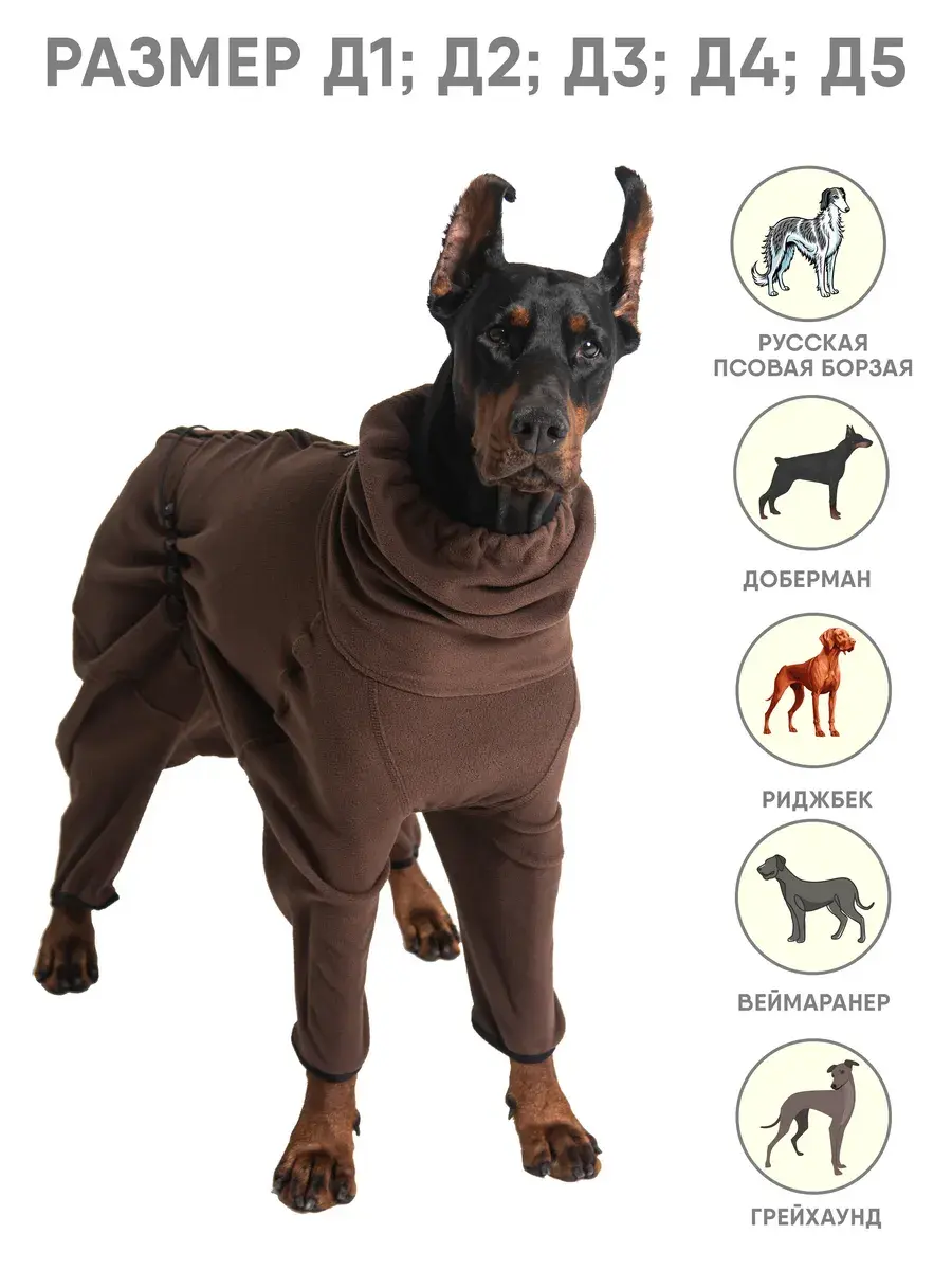 Размер S, М идеально подойдет для пород уиппет, левретки, русская псовая борзая, грейхаунд, поденко ибиценко, мексиканская голая собака, чирнеко дель этна, родезийский риджбек, салюки и пород с отсутствующем хвостом. Одежда для собаки всесезонная размера Д разработана для породы доберман, веймаранер, ретривер, риджбек, ротвейлер, русская гончая, австралийская овчарка, доберман, дог, лабрадор, кавказская овчарка, ризеншнауцер.