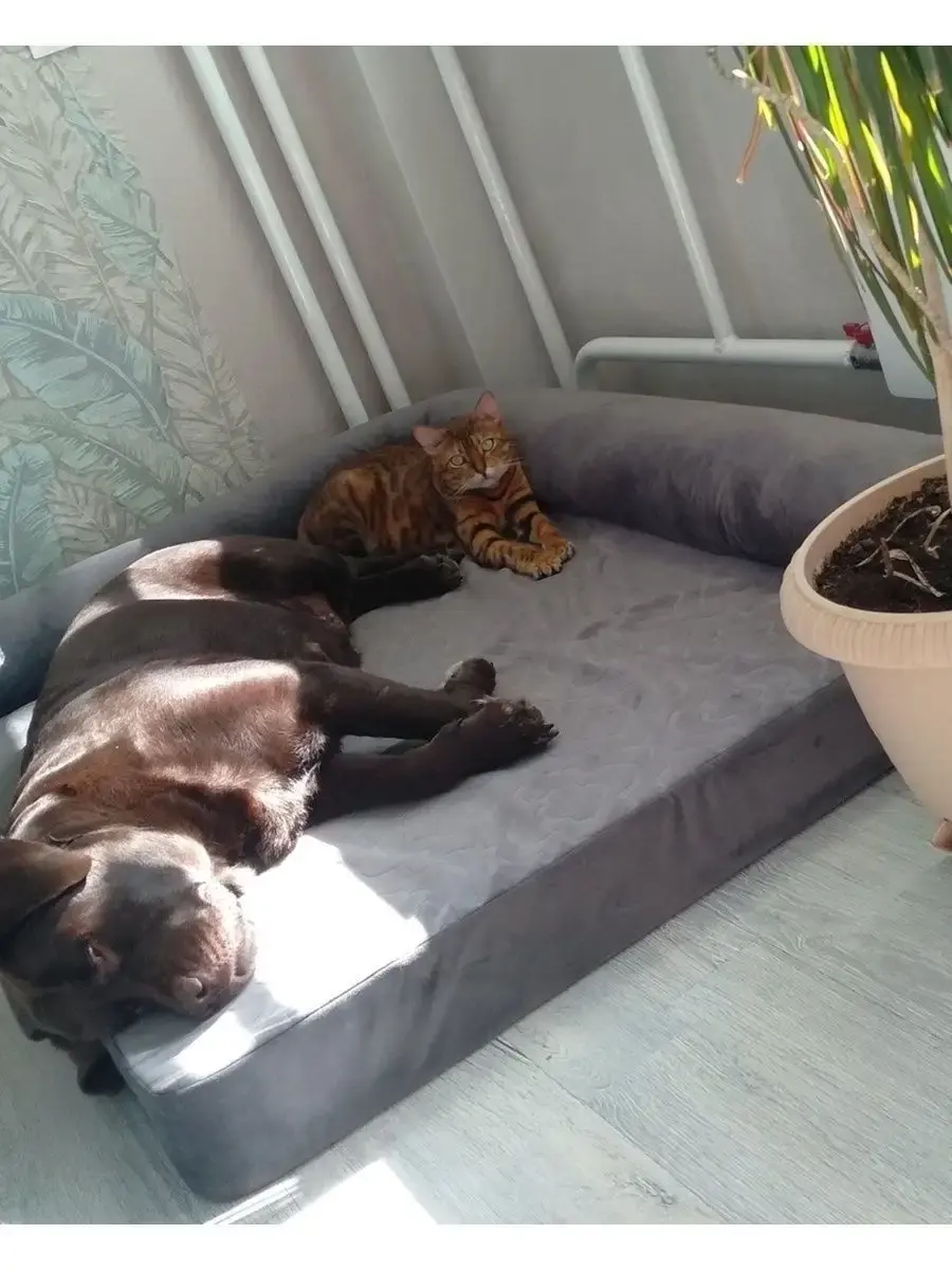 Удобная конструкция лежанки обеспечивает поддержку позвоночника и суставов животного, способствуя правильному положению тела во время сна. Она идеально подходит для собак крупных пород, таких как лабрадоры, ретриверы, овчарки,и т.д.