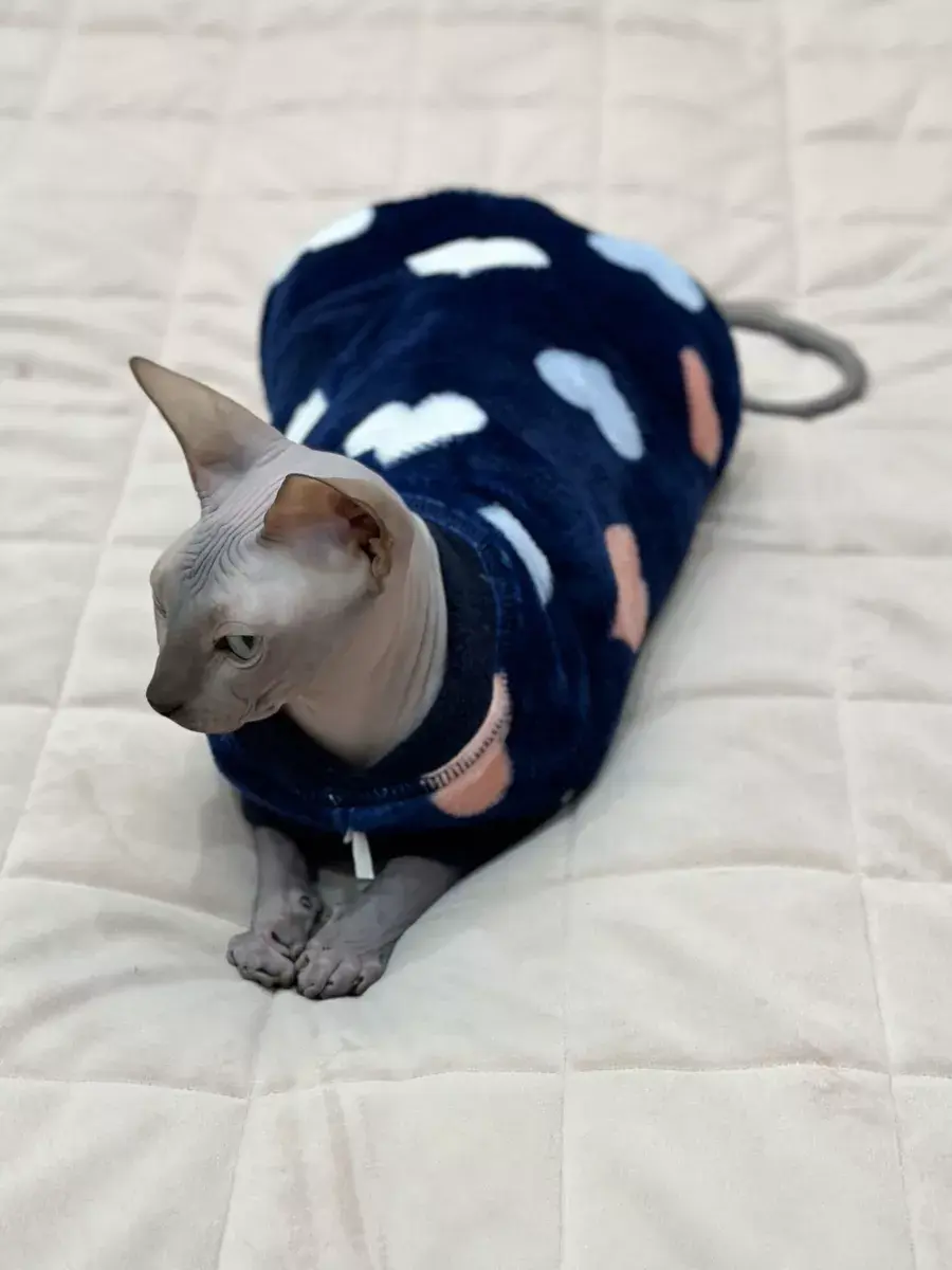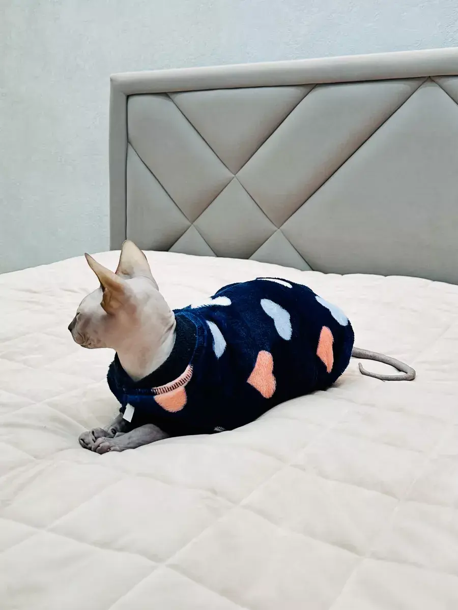 Флисовый жилет для кошек разработан специально для породы сфинкс учитывая их строение тела. Жилет для кошки сшит с одним отверстием для лап, не вызовет дискомфорта при одевании, прогулки- в нем удобно бегать, ходить, одежды и идеально подойдет для приучения питомца к одежде. Свитер для кошек гипоаллергенный, теплый, уютный и комфортный .Одежда для сфинксов и котов защитит от холода, солнца и мелких механических травм. По низу изделия, на горловине и проймах предусмотрены эластичные резинки, чтобы любимец не мог сам вылезти из майки. Рекомендации по уходу за изделием: стирка при 30 градусов.
