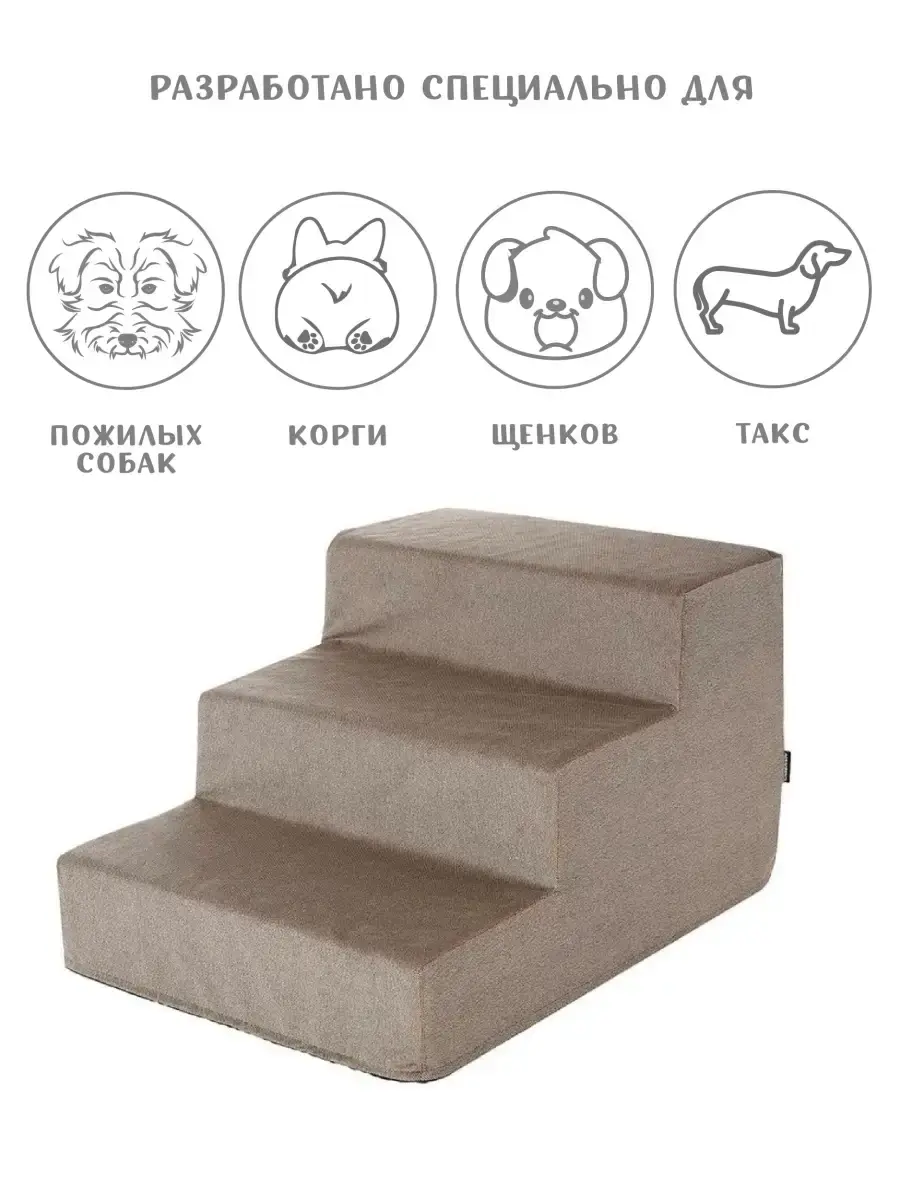 Лестница для животных прикроватная предназначена для маленьких, беременных или пожилых собак, которые не могут самостоятельно запрыгнуть на кровать или диван без посторонней помощи. Ступеньки для собак изготовлены из цельного поролона высокой плотности, что в разы облегчает снятия чехла для стирки и прочной мебельной ткани устойчивой к когтям, зубам питомца. Чехол лестницы для собак на молнии и полностью съемный. Разрешена машинная стирка при 30 градусах. Максимальная нагрузка на лесенку для собак 35 кг. Ширина ступени 20см, высота ступени 12см. Размер (Ш:Г:В): 45х60х36см. Отличный подарок вашему питомцу.