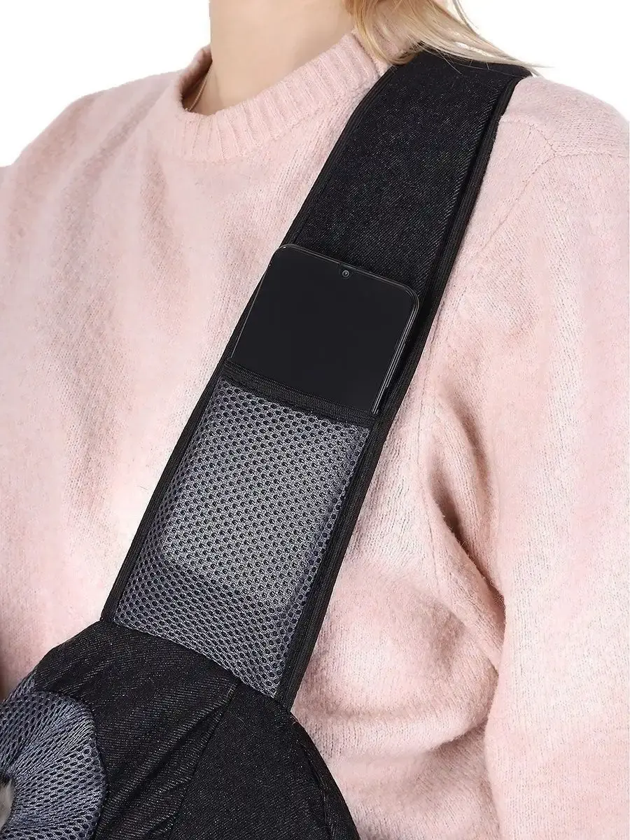 Сумка-слинг имеет продуманный и стильный дизайн, который подходит как для повседневной прогулки, так и для посещения ветеринара, занятия спортом, ездить на велосипеде, ходить в магазины со свободными руками, для путешествий, прогулок с любимым питомцем. Переноска для животных проходит по параметрам многих авиаперевозчиков.